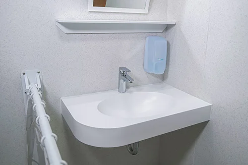 Therefore, we designed a prefabricated and rapidly installable bathroom called the QuickQube with the use of Kerrock material. This bathroom provides a solution to the lack of space and necessary renovations and upgrades, especially in facilities such as retirement homes and hospitals.